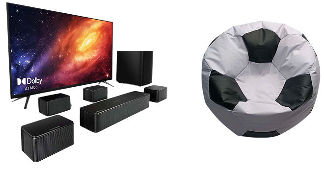 Para armar tu kit partidazo incluye pantalla, barra de sonido y puff tipo balón de soccer